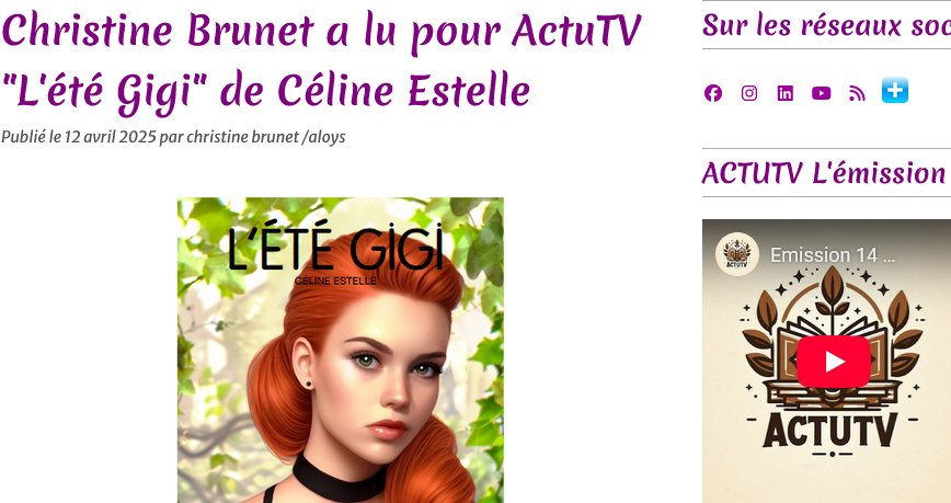 Chronique vidéo sur L’été Gigi sur la chaîne YouTube ACTU TV 2