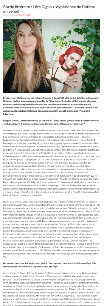 Article et interview « L’été Gigi ou l’expérience de l’intime universel » sur le blog de Miss-Infos (lire ici)